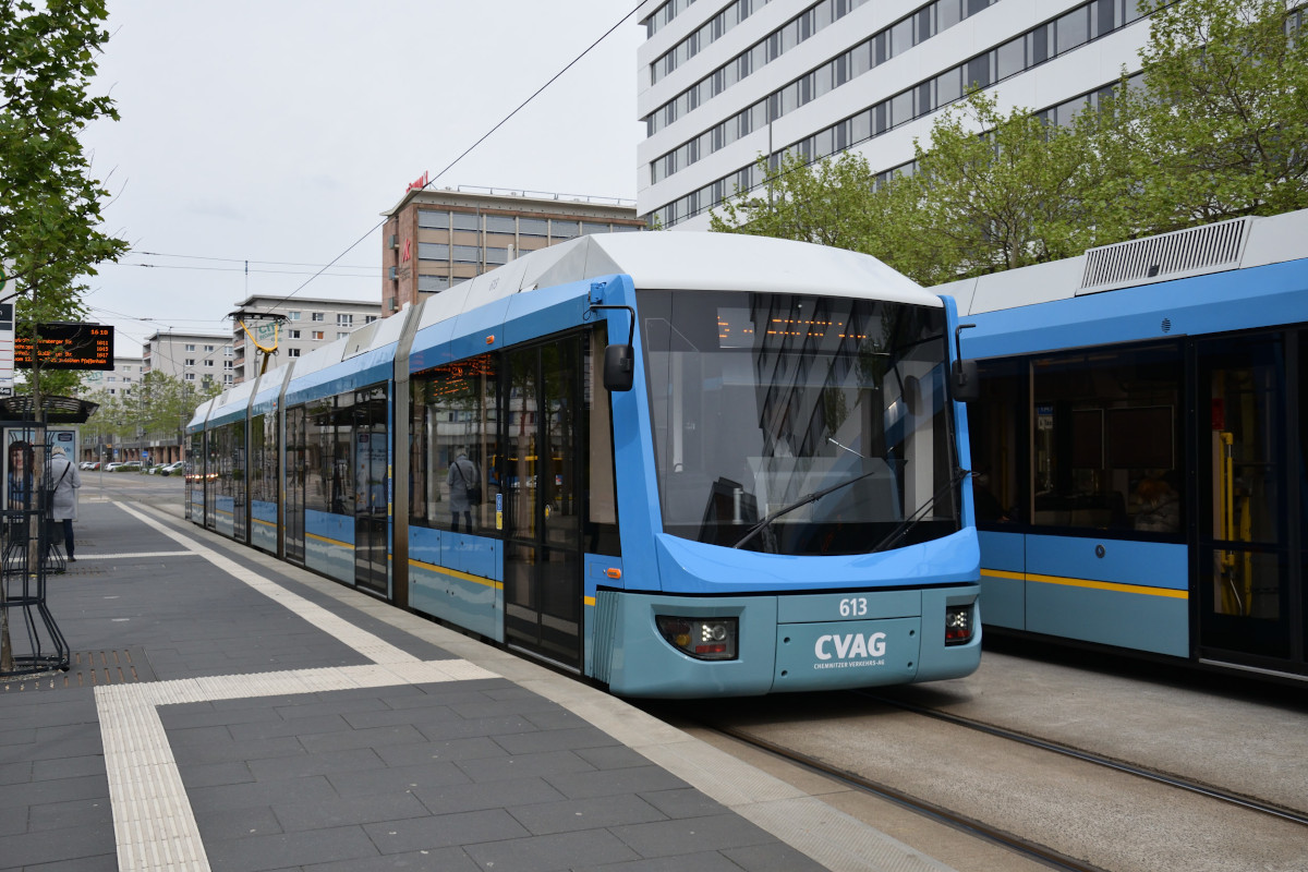 613 verlässt die Haltestelle Brückenstraße/Freie Presse