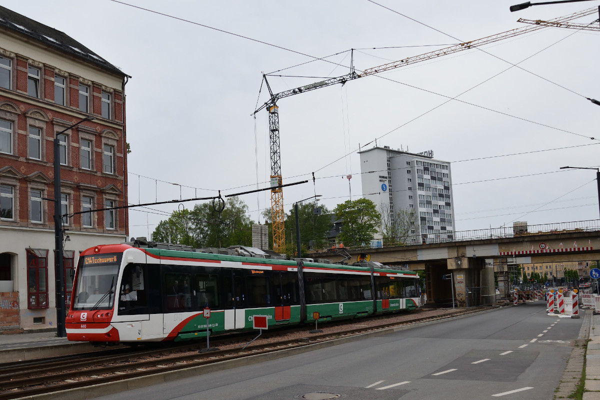 440 in der Baustelle hinter der Haltestelle Bernsbachplatz