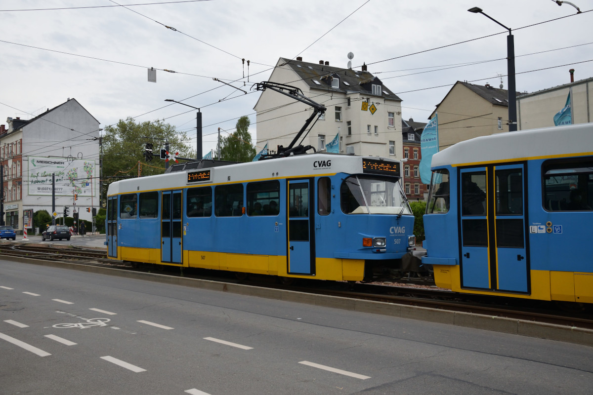 517 + 507 erreicht die Baustelle vor der Haltestelle Bernsbachplatz