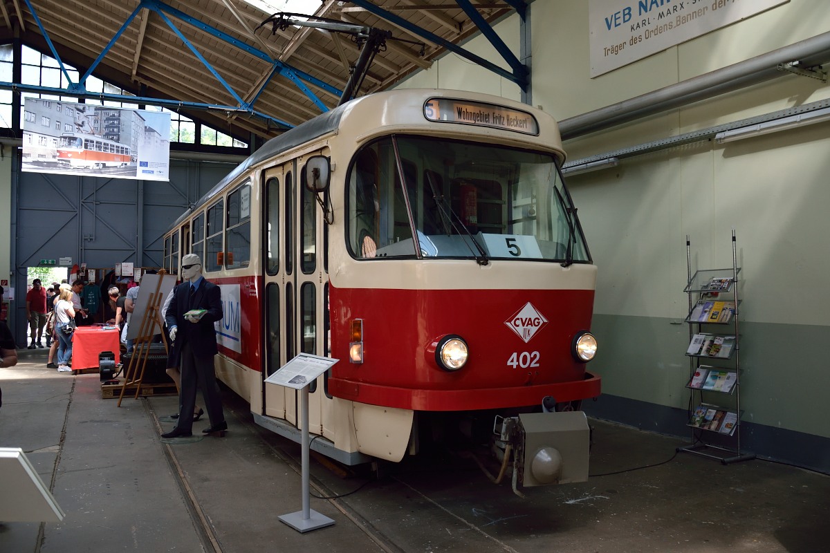Der Tatra T3D Triebwagen 402 in der Schmalspurhalle