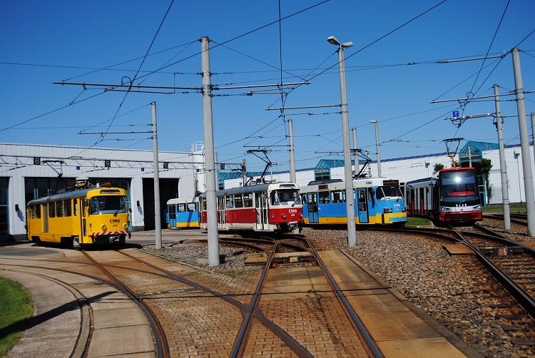 Kleine Parade mit in Tschechien gefertigten Fahrzeugen im Betriebshof Adelsberg