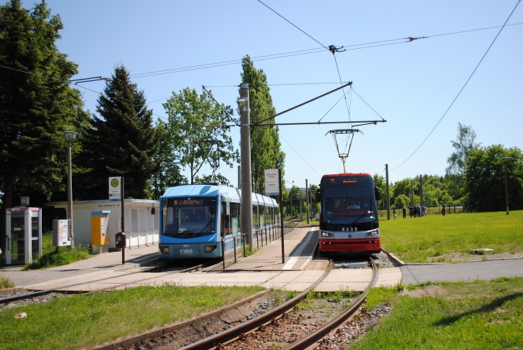 Endhaltestelle Altchemnitz mit der Citybahn aus Stollberg (Sachs)