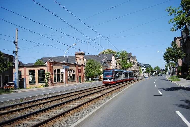 Zwischen den Haltestellen Brückenstraße (jetzt Stephan-Heyn-Platz) und Zentalhaltestelle