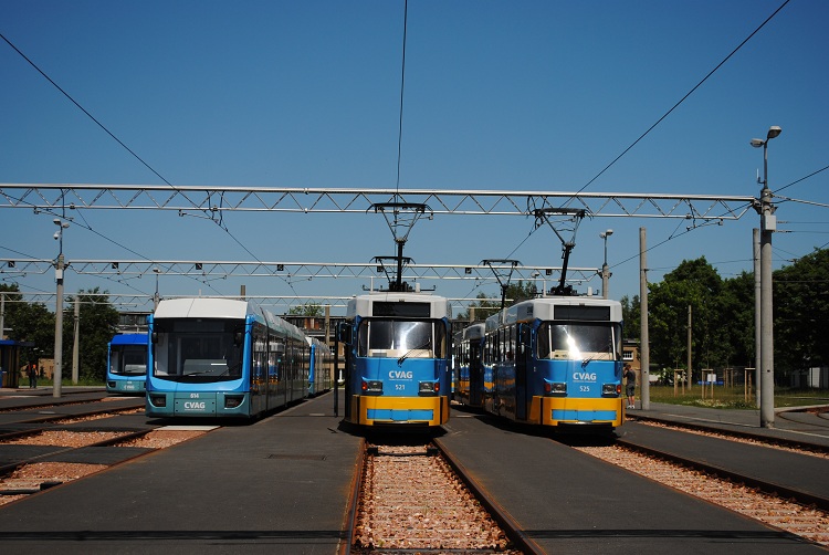 Abgestellte CVAG-Straßenbahnen im Betriebshof Altchemnitz