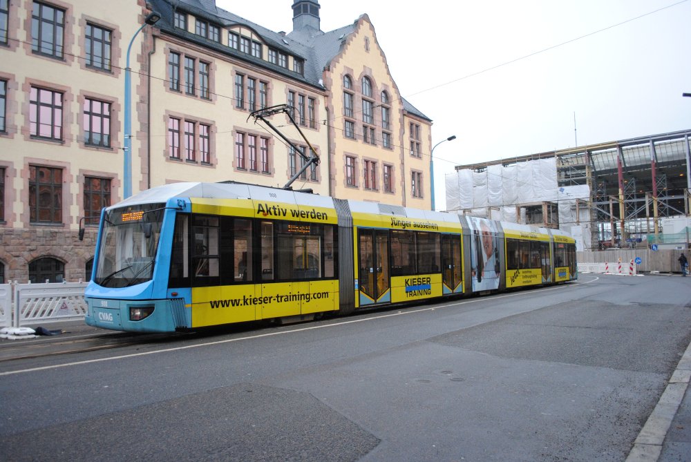 908 auf dem Wendegleis vor dem Hauptbahnhof, ab 18.02.2013 wurde hier der Verkehr eingestellt